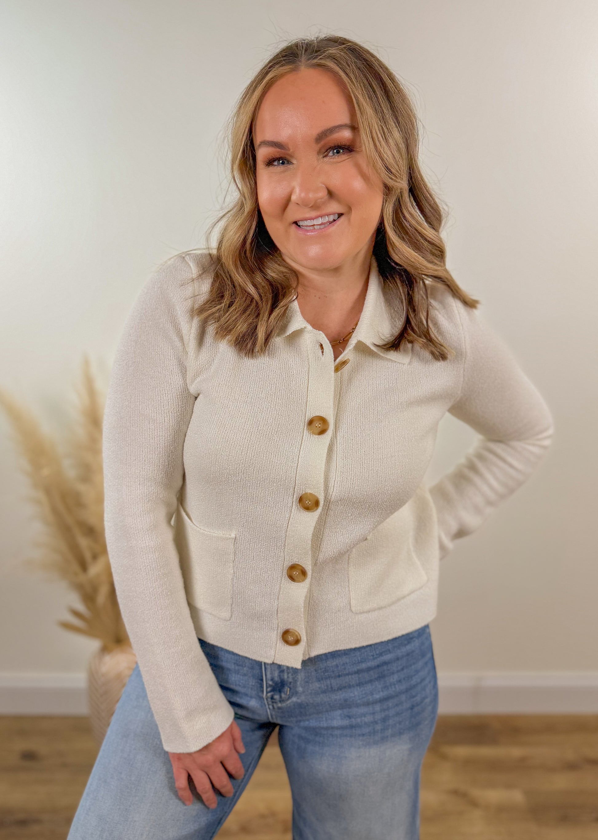 Collared Button Cardigan- Ivory
